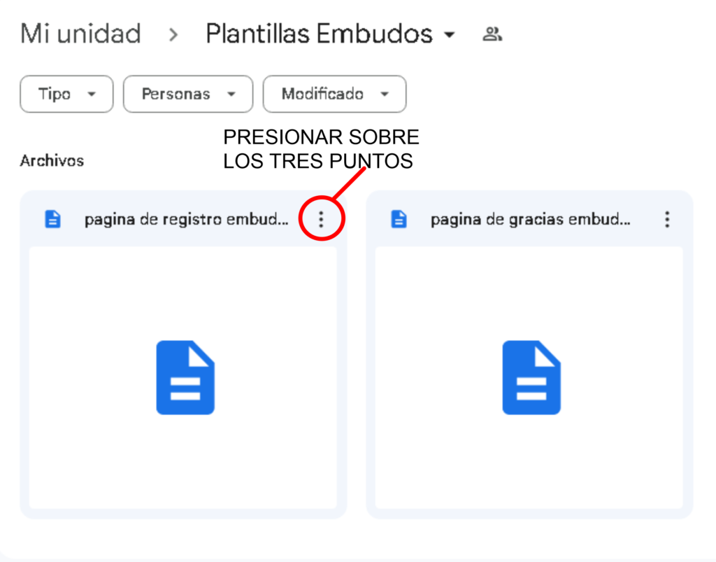 Paso 1: Vaya a Google Drive y haga clic derecho en el archivo que desea compartir o presione sobre los tres puntos.