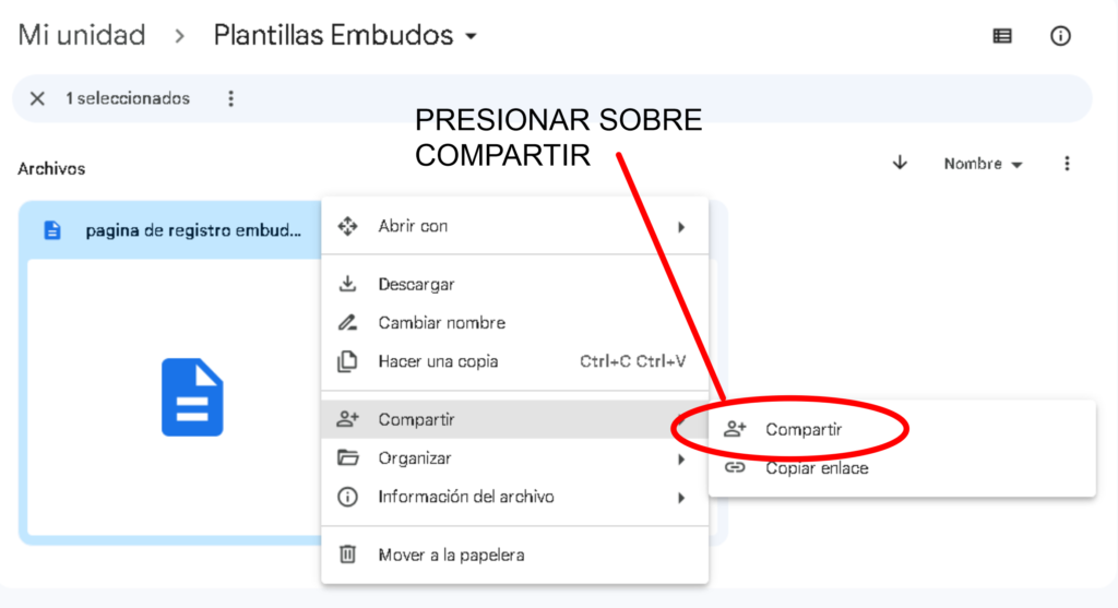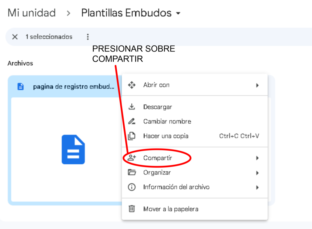 Paso 2:En la ventana que aparece presionar sobre compartir.